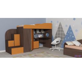 Второй вид кроватей-чердаков рассчитан на возраст детей от пяти лет. Спальное место в таком случае располагается на высоте 1,3-1,6 метра. На первом ярусе чаще всего есть шкаф и рабочая зона в формате письменного стола и книжных полок.