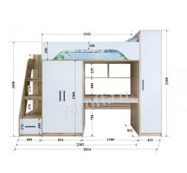 Размеры: высота 2000мм, ширина 2332 мм, глубина 832 мм