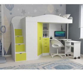[name] => Кровать-чердак Кадет-1 с универсальной лестницей Белое дерево/Лайм